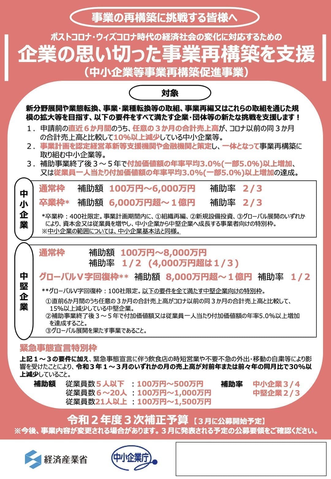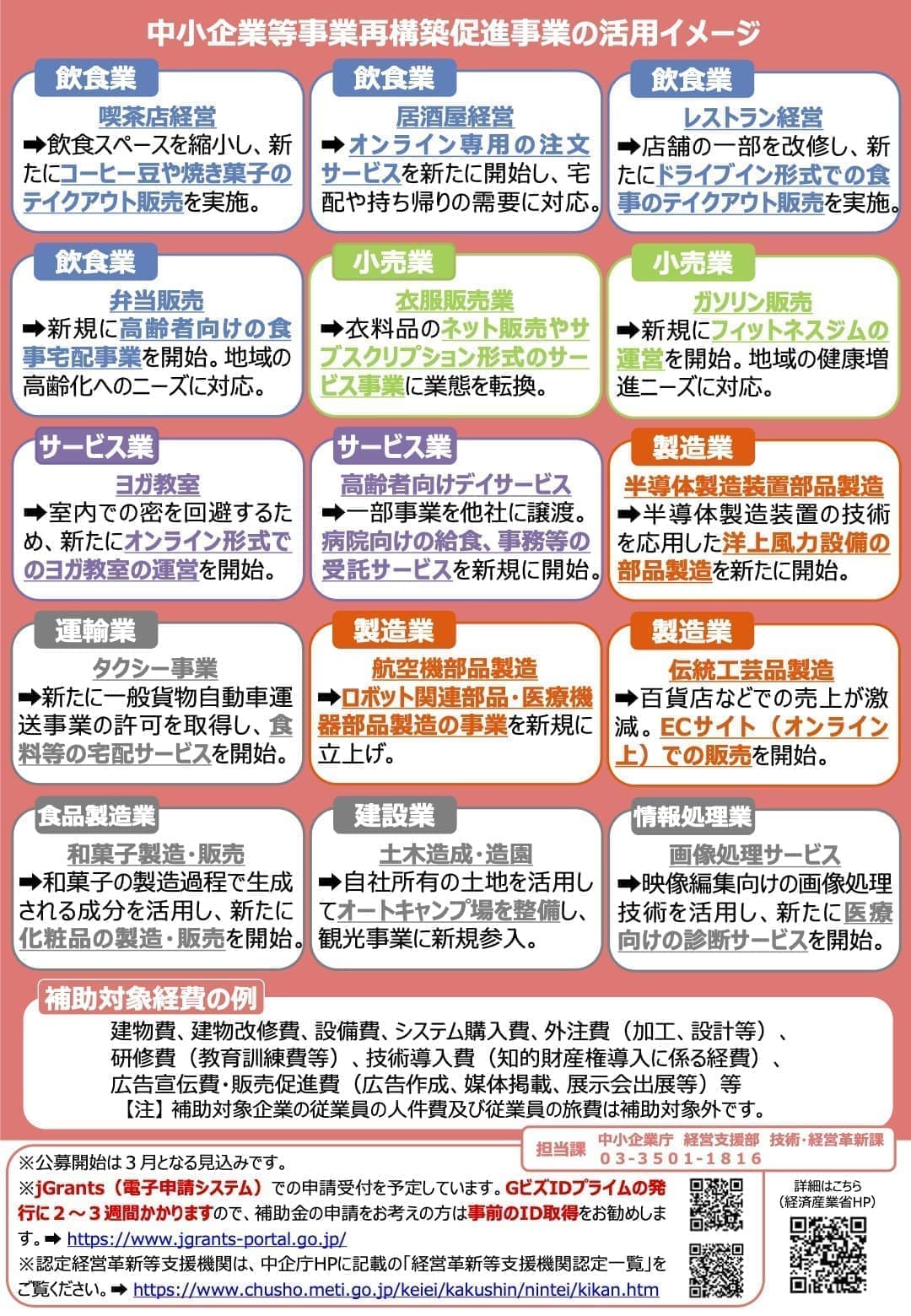 - 小規模事業者持続化補助金 <コロナ特別対応型>『特例事業者 事業再開枠』