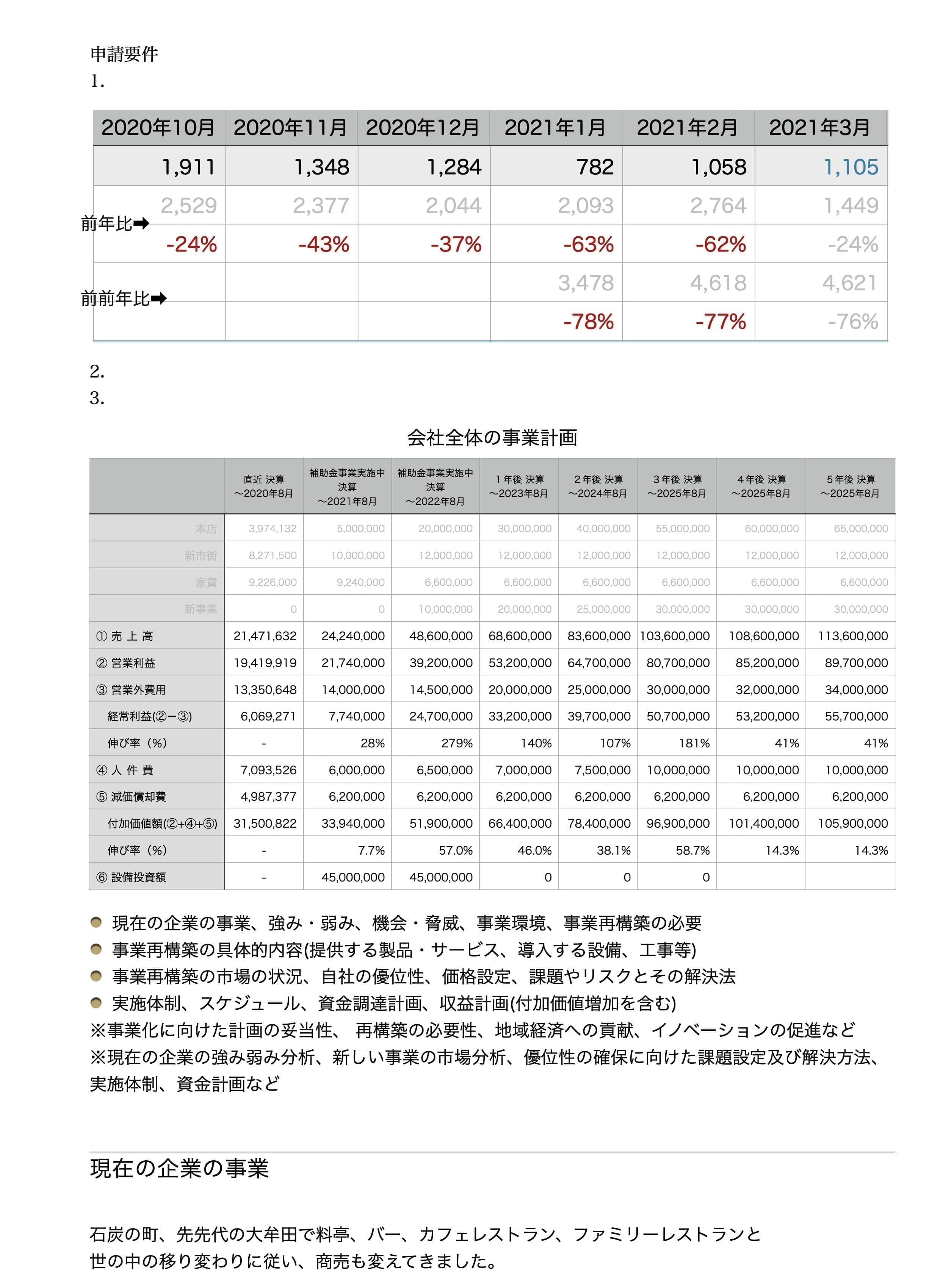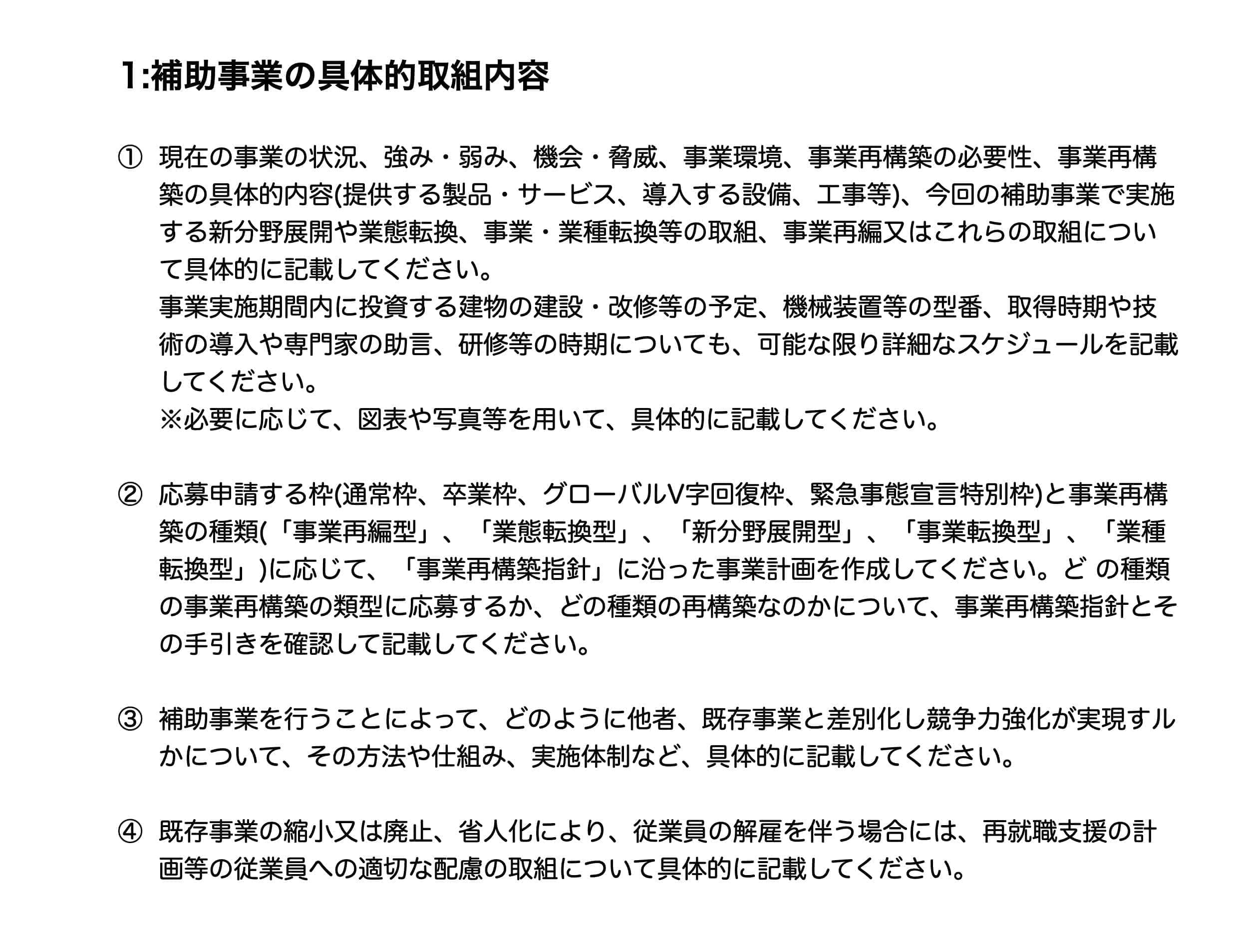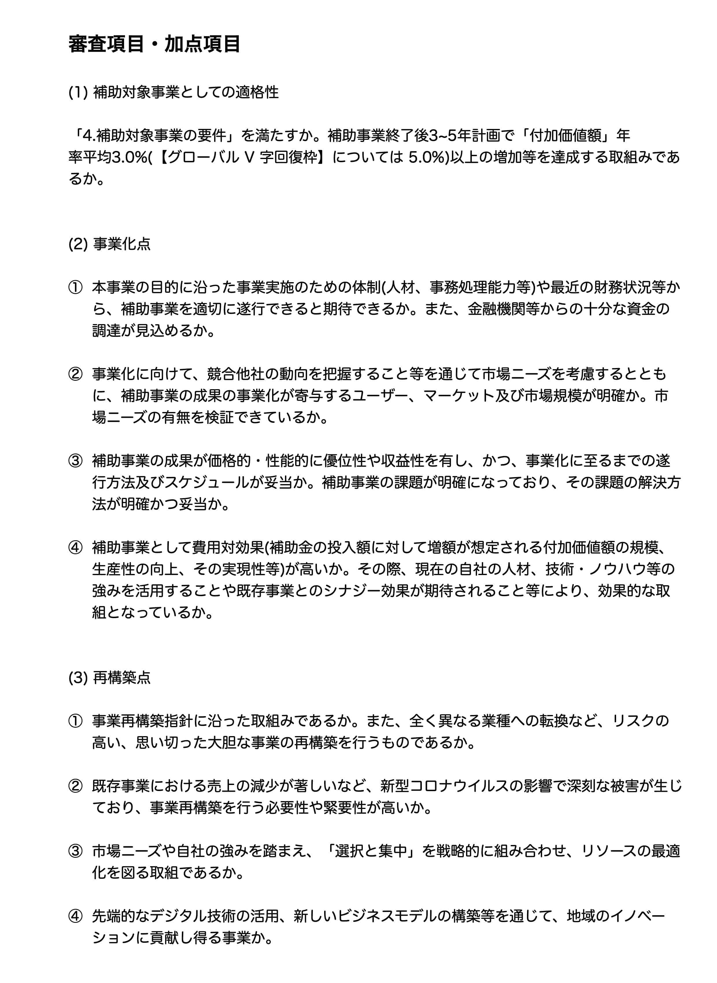 - 既存事業における売上の減少が著しいなど、新型コロナウイルスの影響で深刻な被害が生じており、事業再構築を行う必要性や緊要性が高いか。