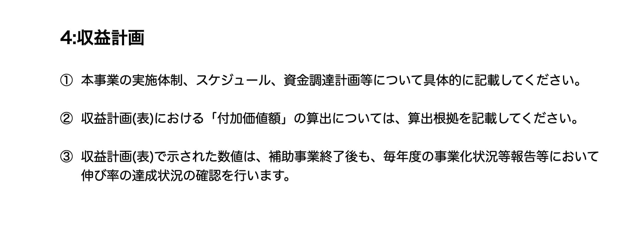 実施体制、スケジュール、資金調達計画、収益計画(付加価値増加を含む)