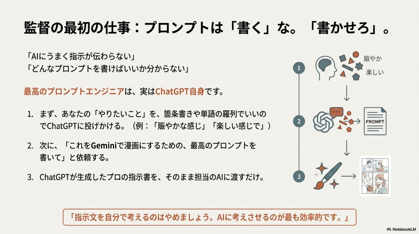 1. プロンプトの専門家はもう不要。「AIにAIへの指示文を作らせる」という新常識