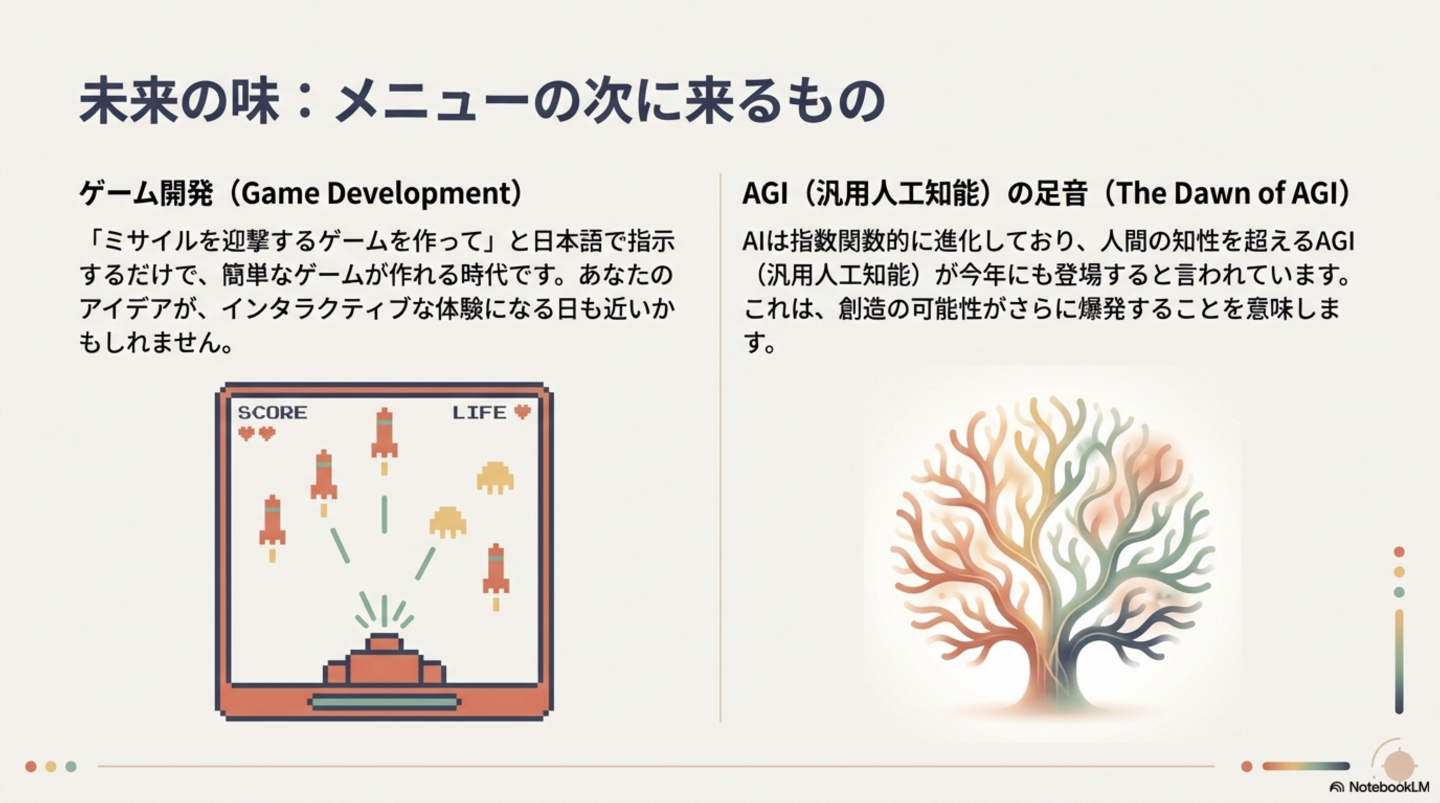 これらの事例は、AIがもはや一部の専門家だけのものではなく、あらゆる人の創造性を解放するツールへと進化していることを明確に示しています。