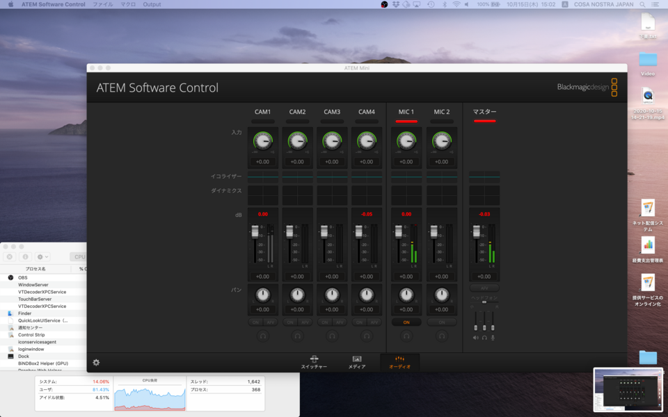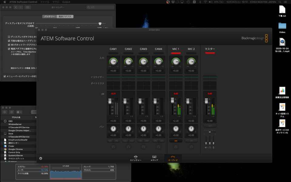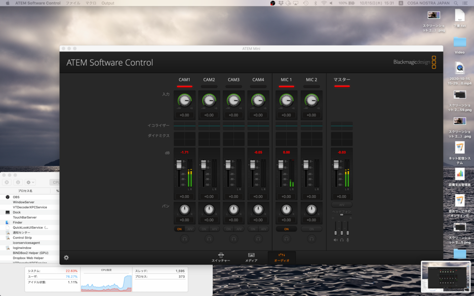 収録マイクの音量等調整とパソコン画面の配信テスト