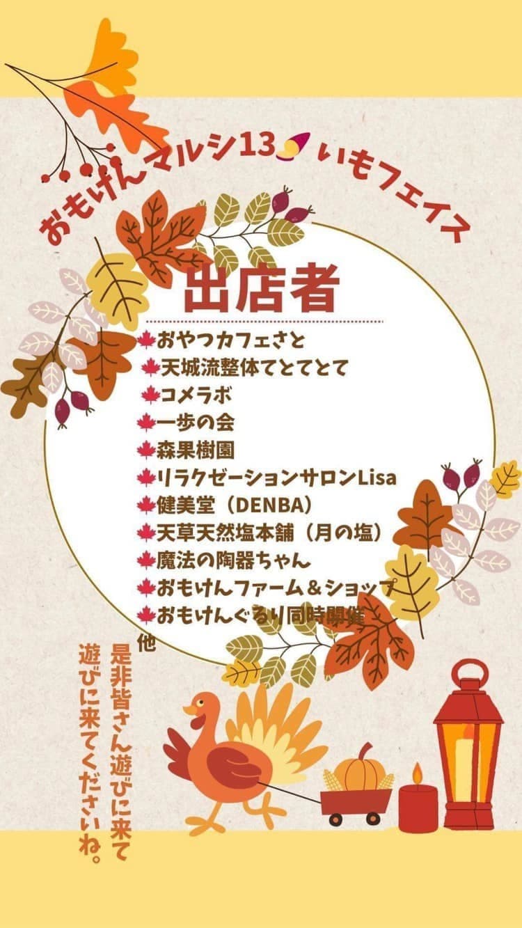 当日ふらっと来ていただくのも良し事前に持ち寄りたい方はおもけんファームの自然栽培さつまいもと交換可能です(受付は月曜日18:00〜スターライトカフェ&ウエディングさんでお受け取り可能です。)