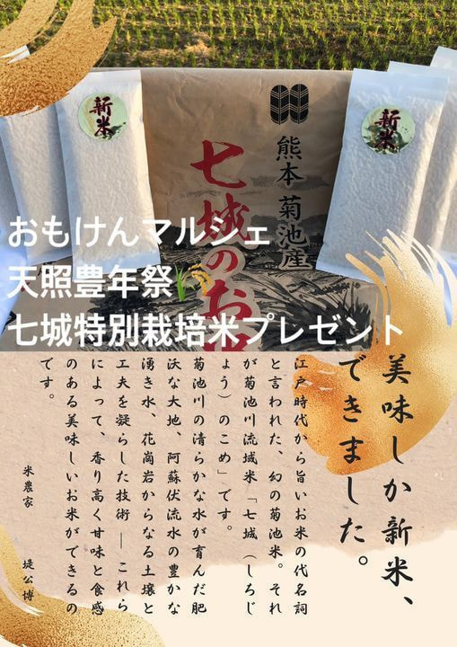 今回のおもけんマルシェで米処菊池市七城の特別栽培米新米(2合)お試しパックをプレゼント致します🎁(ご予約先着50名様)