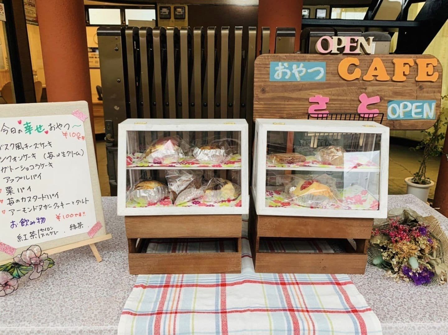 「おやつカフェさと」今回も里美さんの心を込めた美味しいおやつを販売します。煎茶と和菓子のセットもご用意します/「パン工房バンビ」ミルクとバターをたっぷり使った風味豊かなパン屋さん/押し花しおり作り/整体「てとてとて」