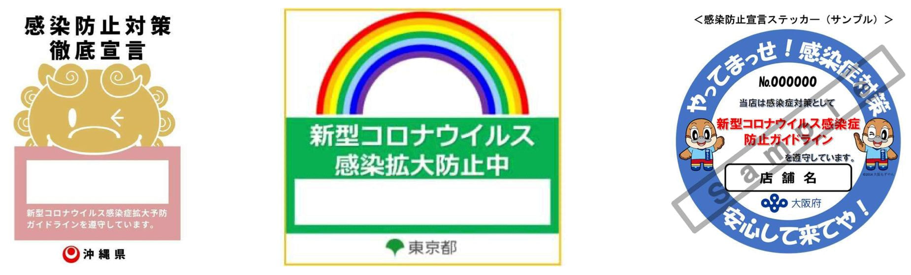 「周知を図る」「努める」「徹底を図る」「できるだけ」「適時」「こまめに」「促す」「できる限 り」等の表現が多いことが特徴である。そして、これらのガイドラインを守った店舗には、感染防止 徹底宣言ステッカーを自己申告で交付することになっています。