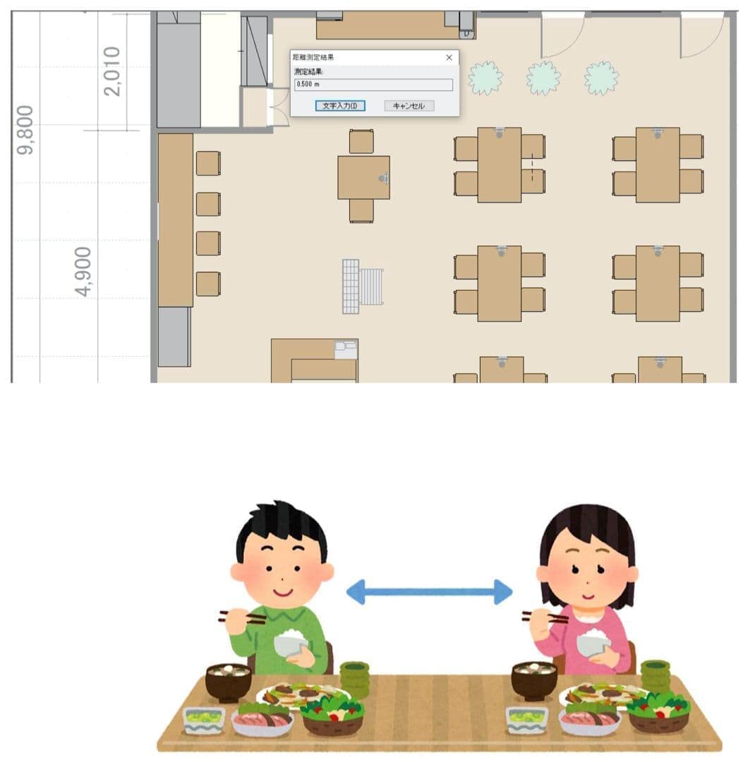 個室など、すでにテーブル・椅子 の配置が動かせない場合には、ソー シャルディスタンスを実施する為は、 内装工事が必要となる場合もある。