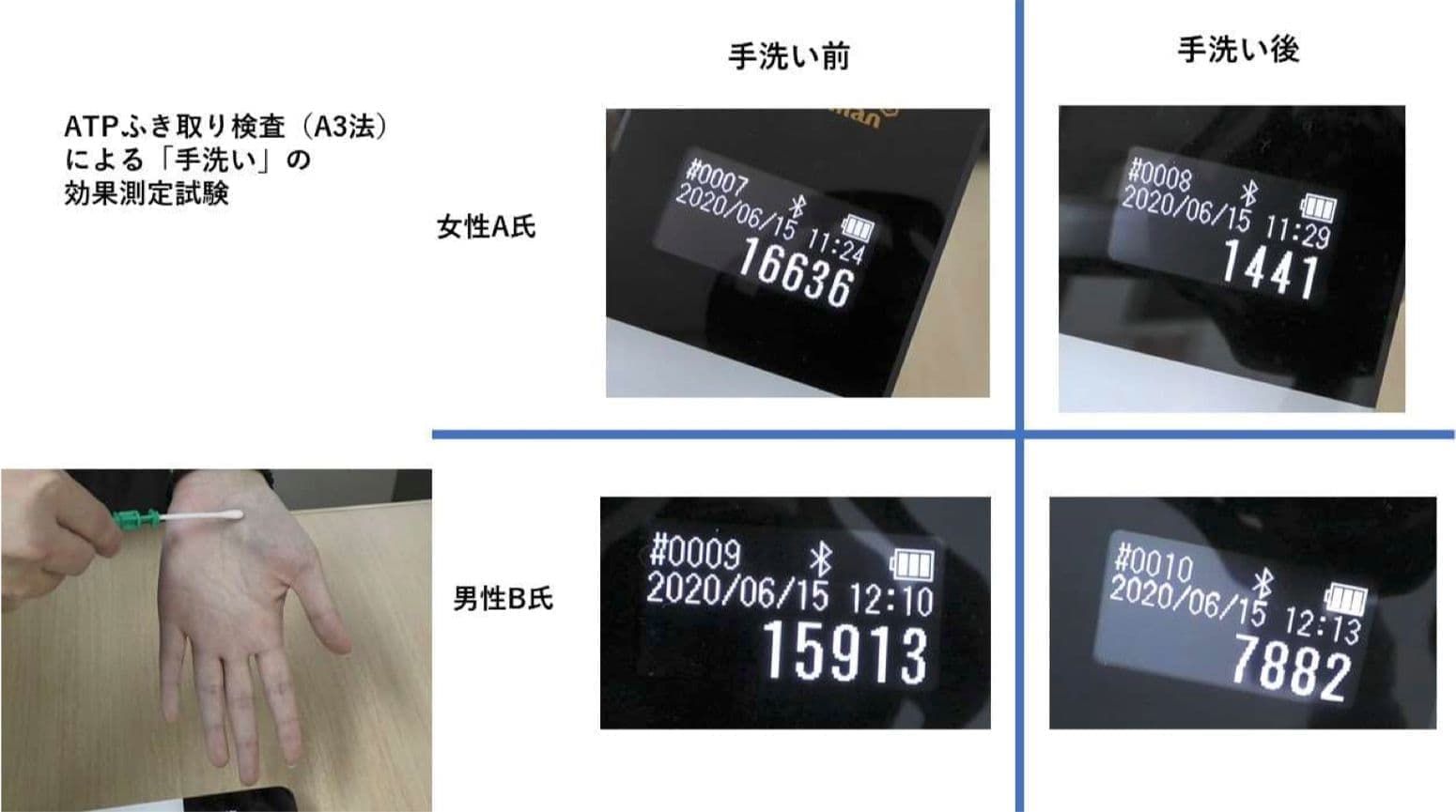 しかし、目に見えない、または微量の汚れや残留物を検出するように設計されており、ウイルスとは別に、微生物 や唾液、鼻水、血液などの体液、その他の有機物質には ATPが含まれています。新型コロナウイルスは唾液に含まれており唾液と共に外部に排出されるため、無機物上のATPを除去する清掃を行うことにより結果として新型コロナウイルスの除去に結びつく。