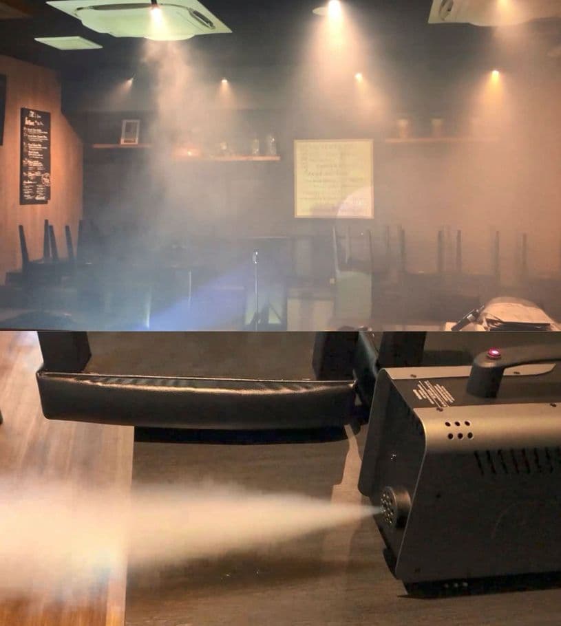 スモークを、部屋に充満させて目視で、空気の流れを把握して換気の課題を発見する方法です。換気が悪い場合には、空気の滞留が 発生する為、換気の悪い場所や、 流れ等のハザードを見つけることが可能です。
