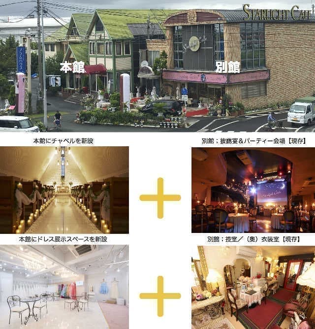 本館2階(100坪)、別館2階3階(60坪)は有限会社レストラン凱旋門がブライダル事業に使用