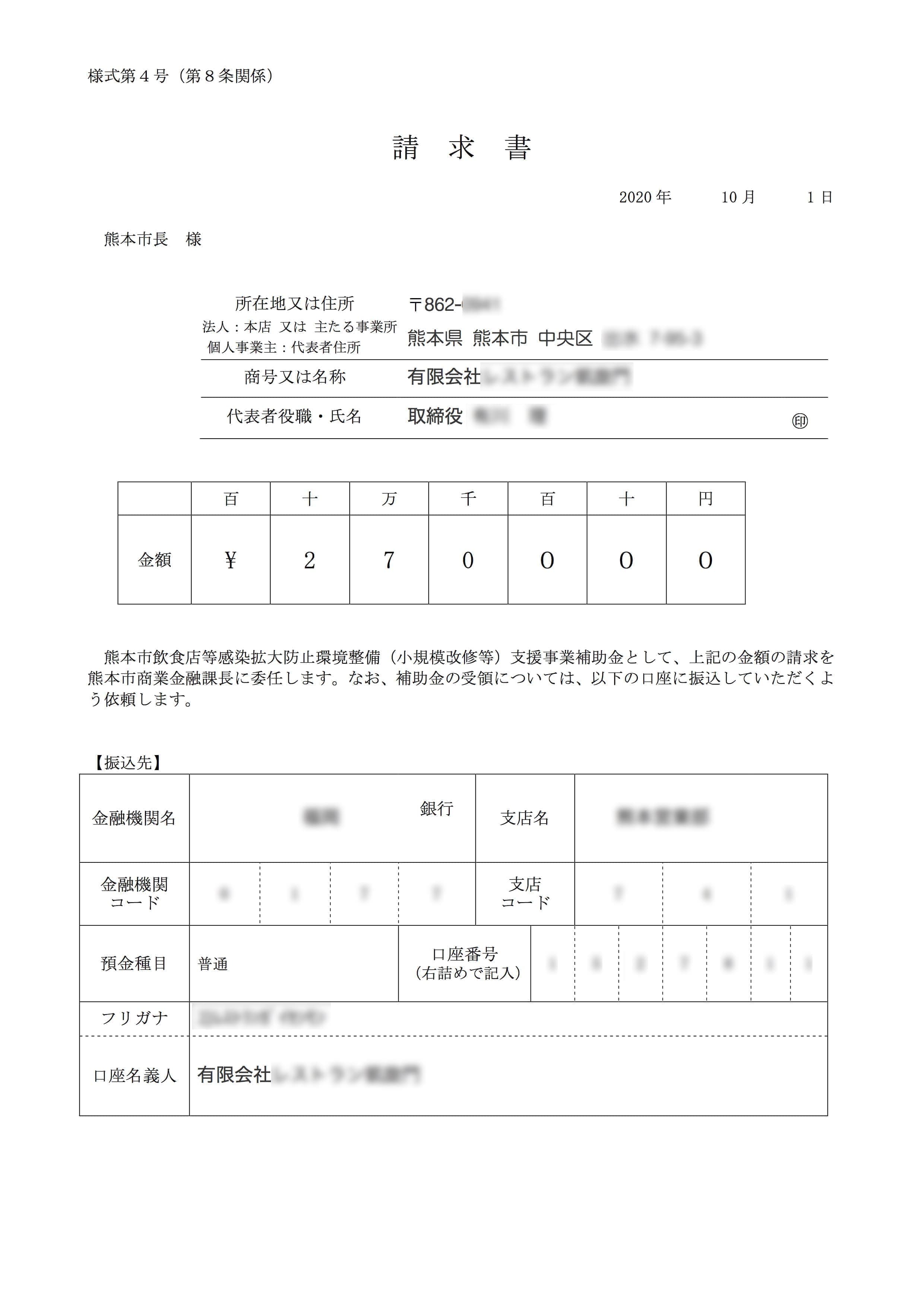 ※領収書の宛名欄は、「商号」「店舗名」または「代表者氏名」が記載されていること。