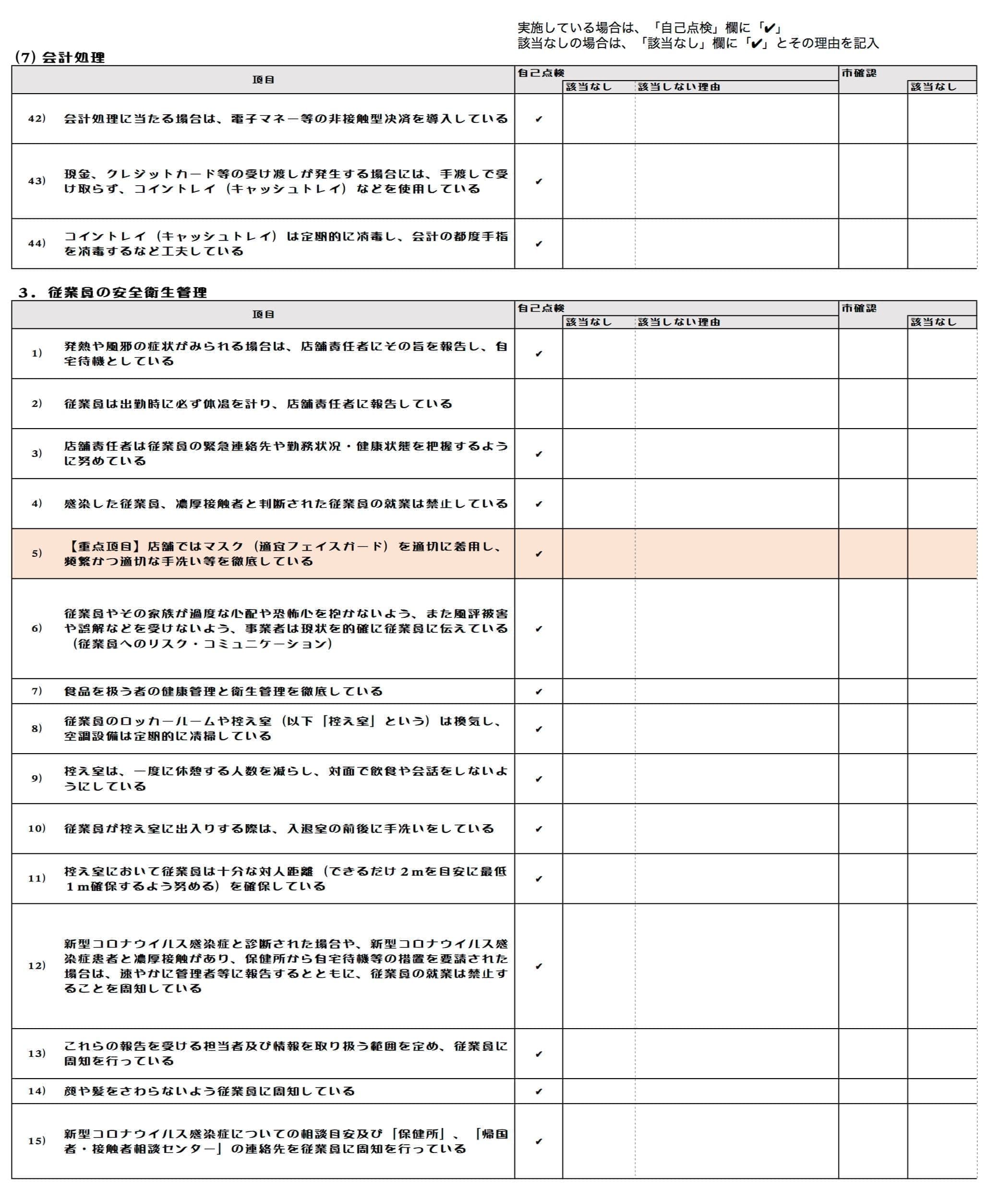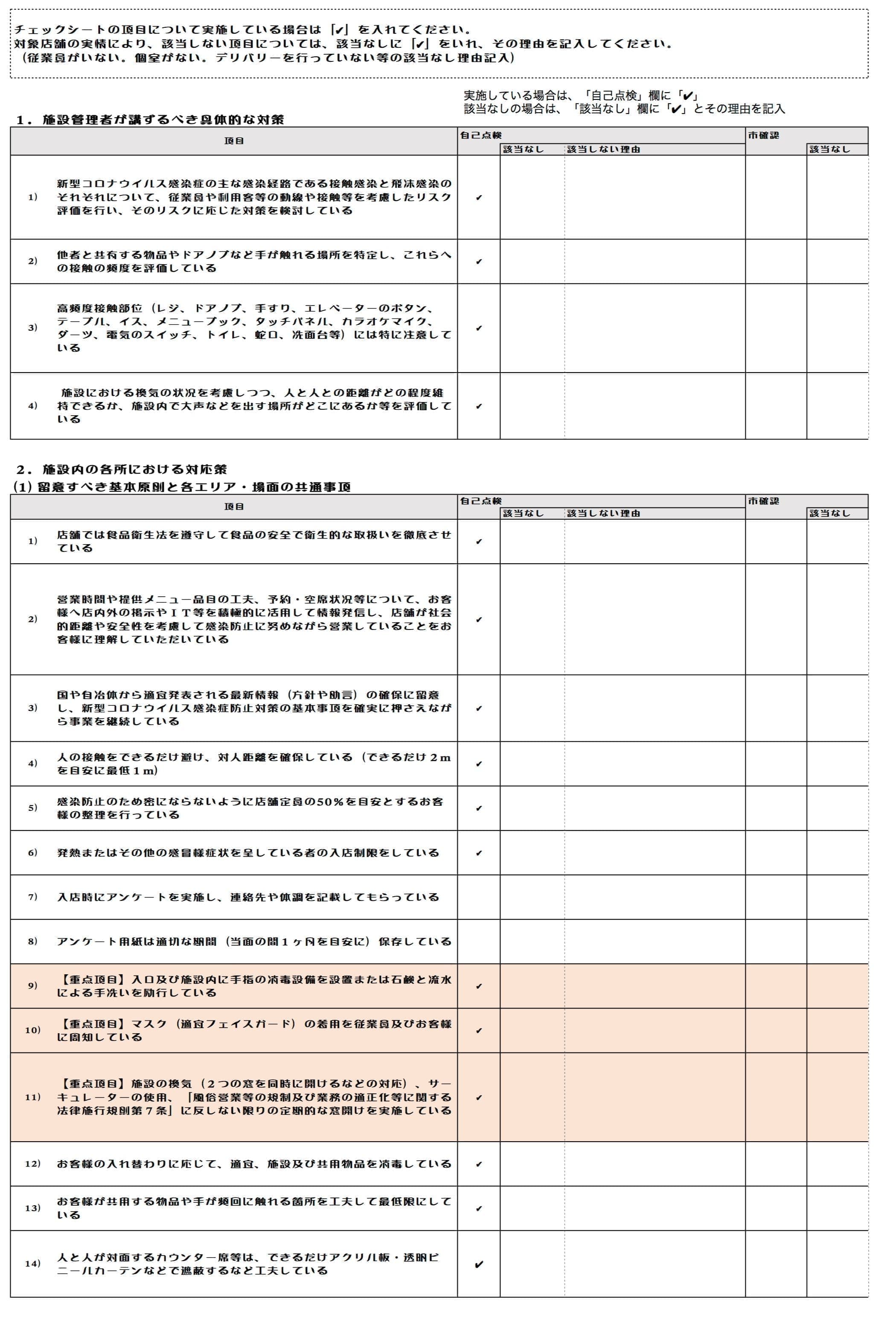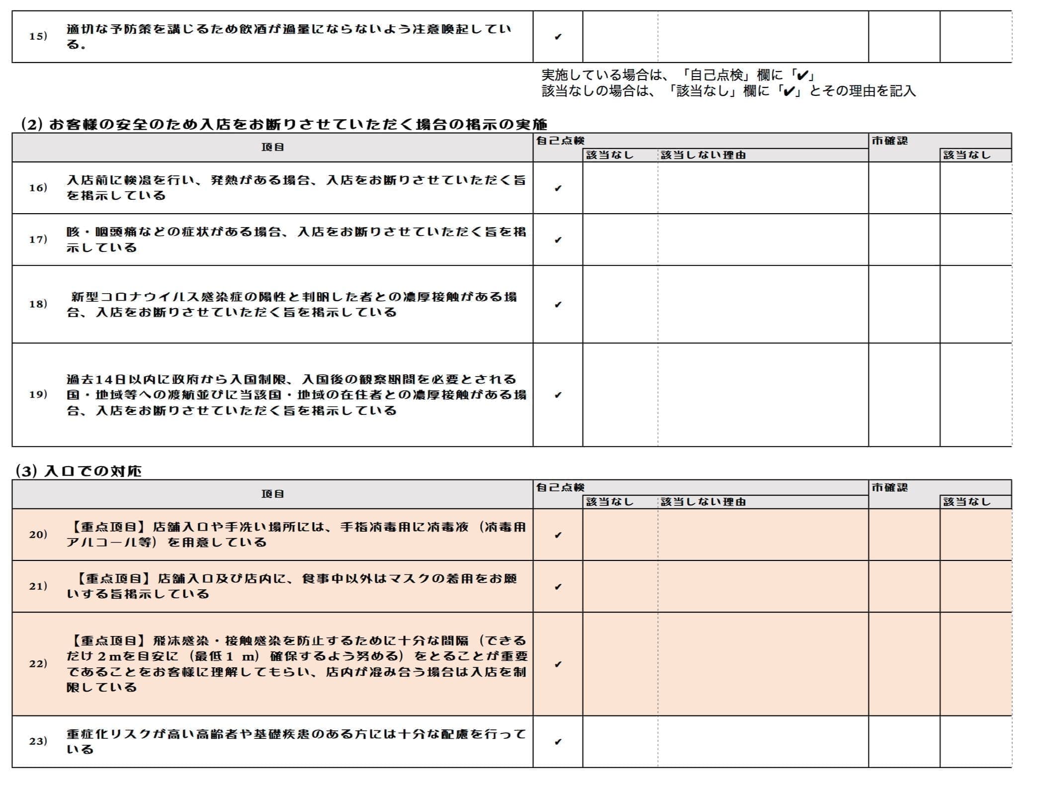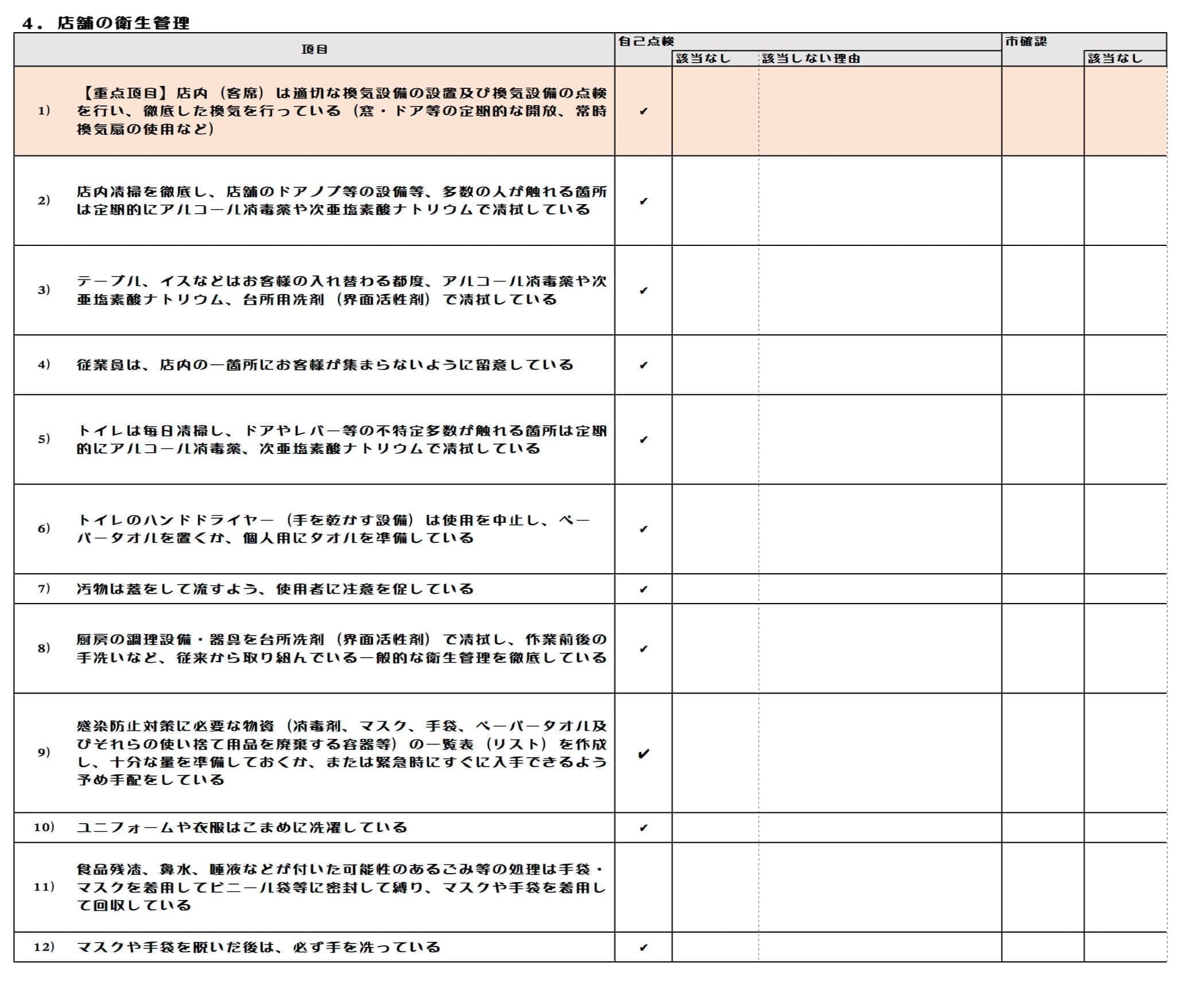 非常事態宣言が全国に拡大された令和2年4月16日以降に実施した下記の感染防止策を対象とする