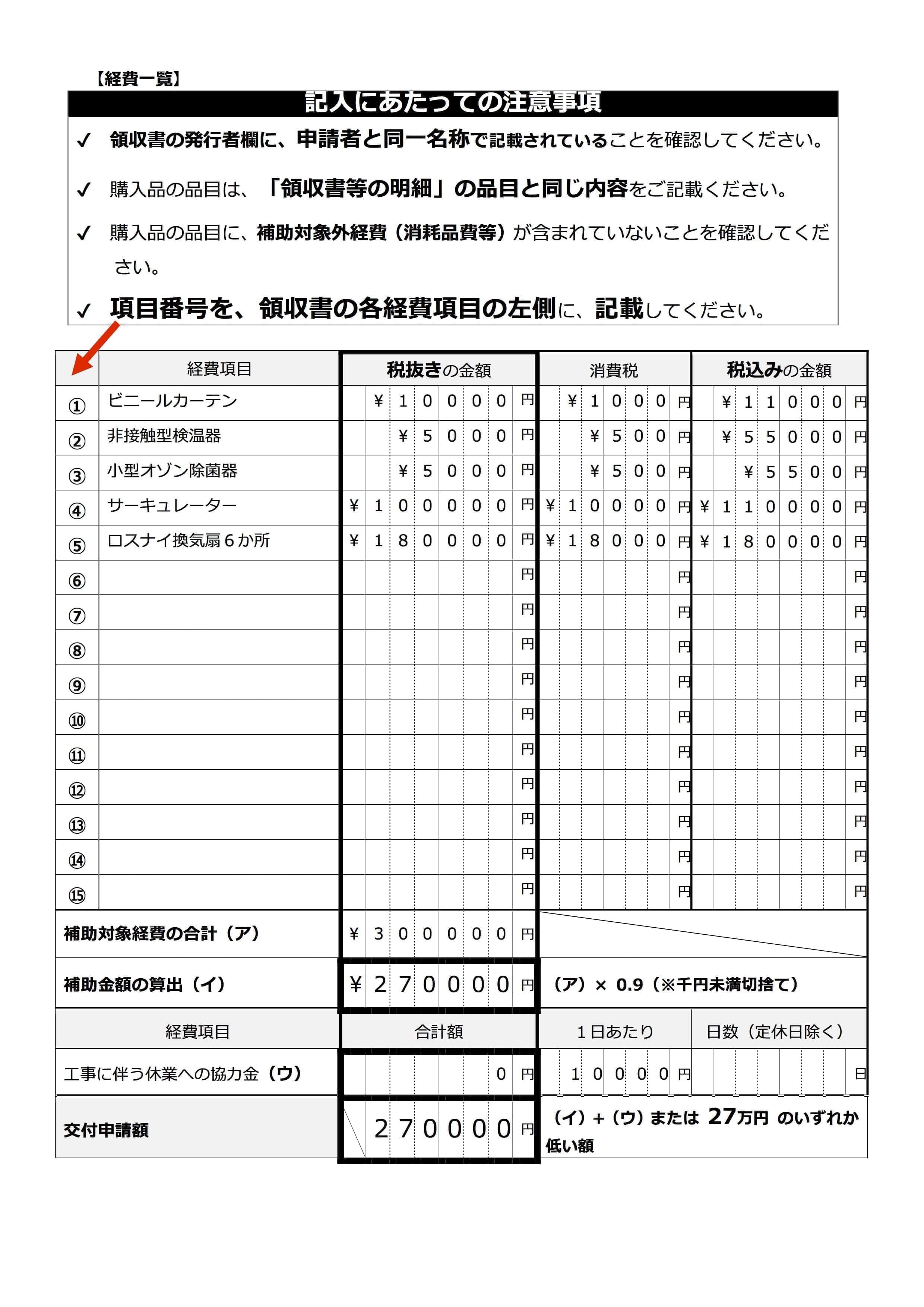 ※経費の内訳がわからない場合は、領収書に加えて、内訳がわかる請求書等の写しも提出し てください。