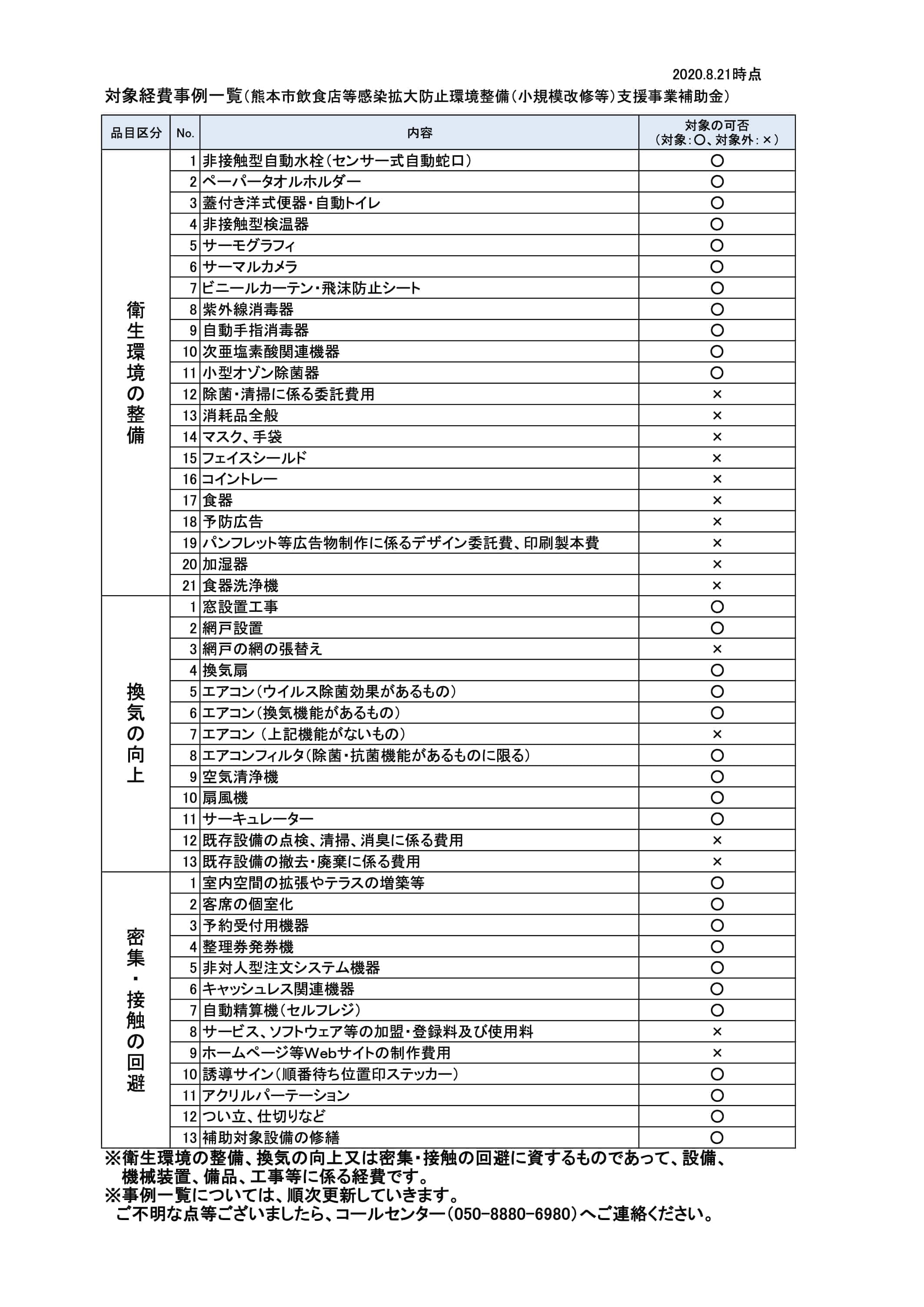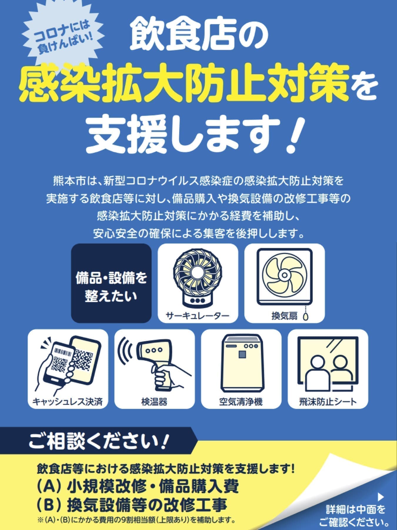 例:空気清浄機、換気扇、サーキュレーター、アクリルパーテーションの設置等