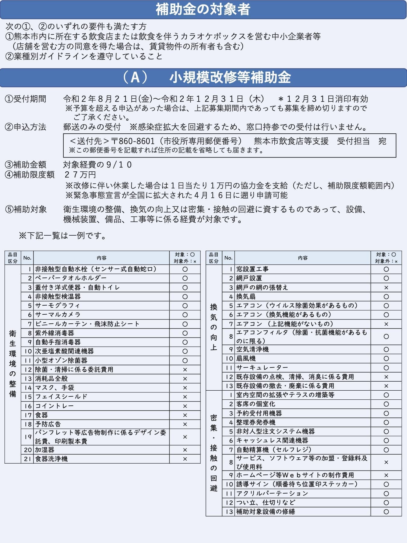 (2) 換気設備等の改修工事費への補助