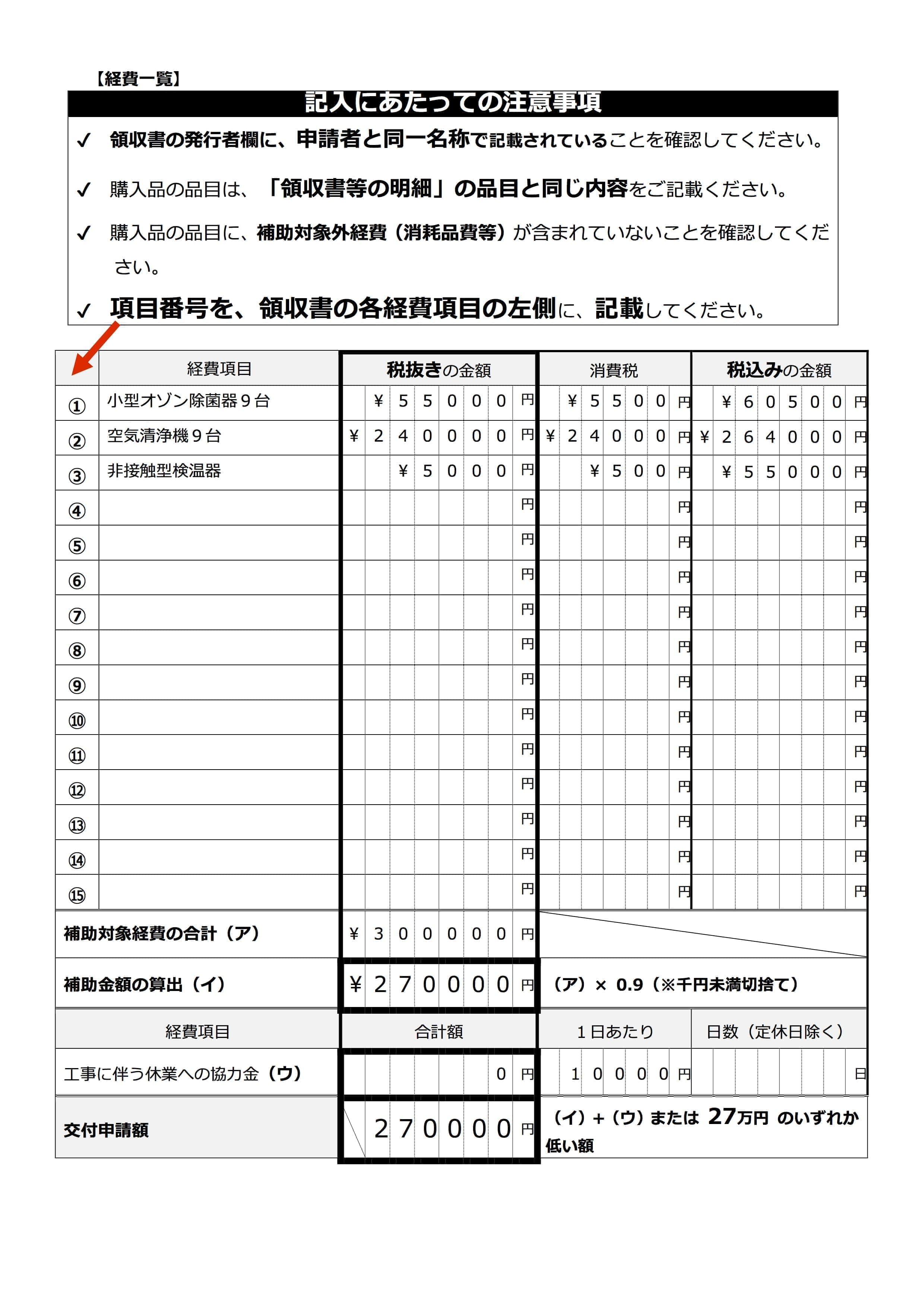 ※経費の内訳がわからない場合は、領収書に加えて、内訳がわかる請求書等の写しも提出し てください。