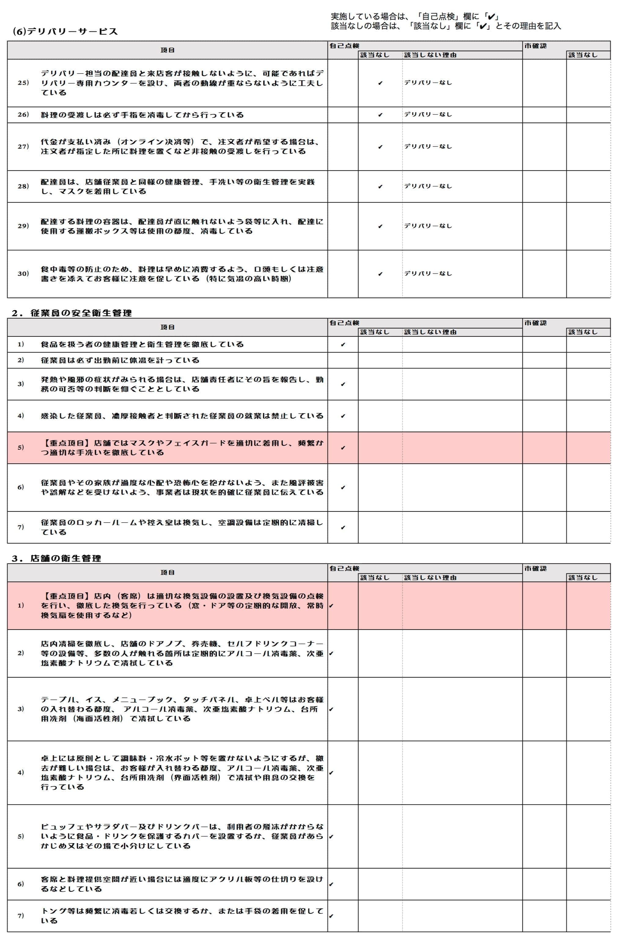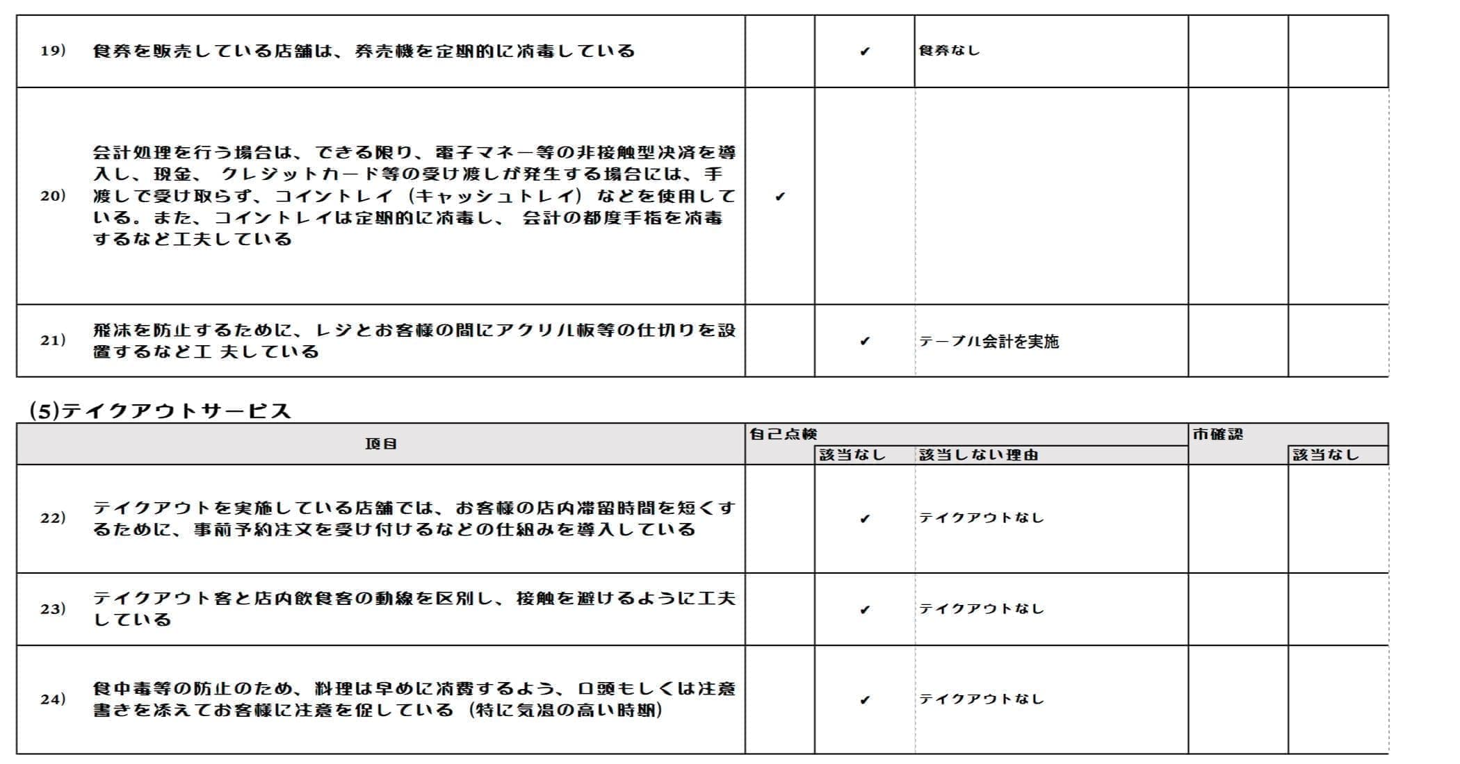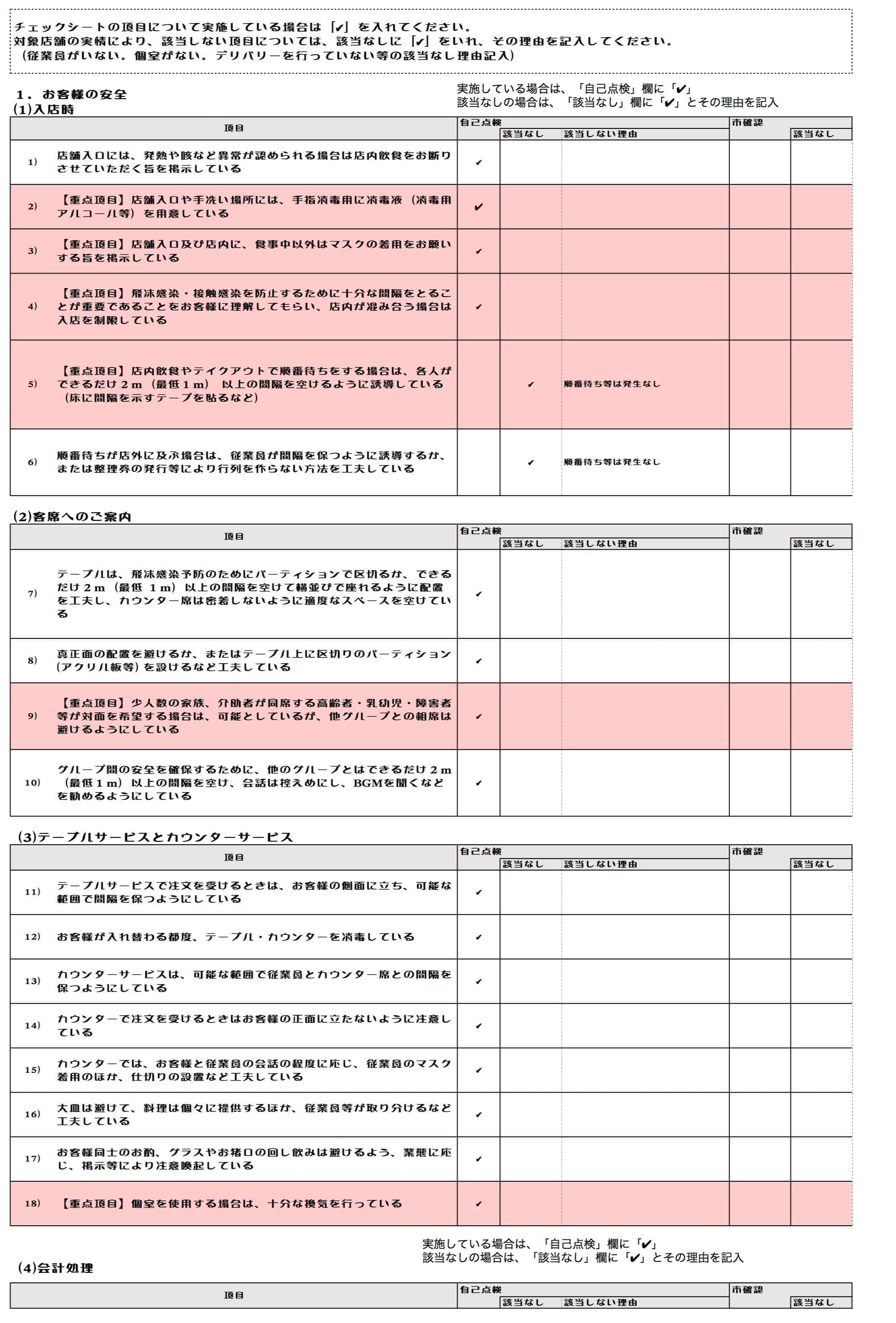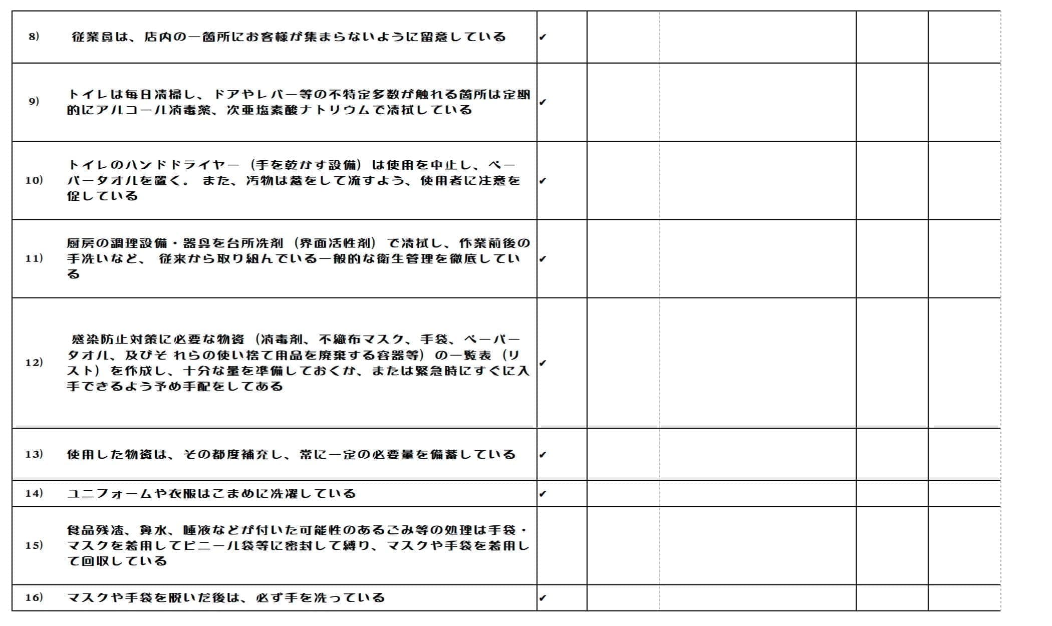 非常事態宣言が全国に拡大された令和2年4月16日以降に実施した下記の感染防止策を対象とする