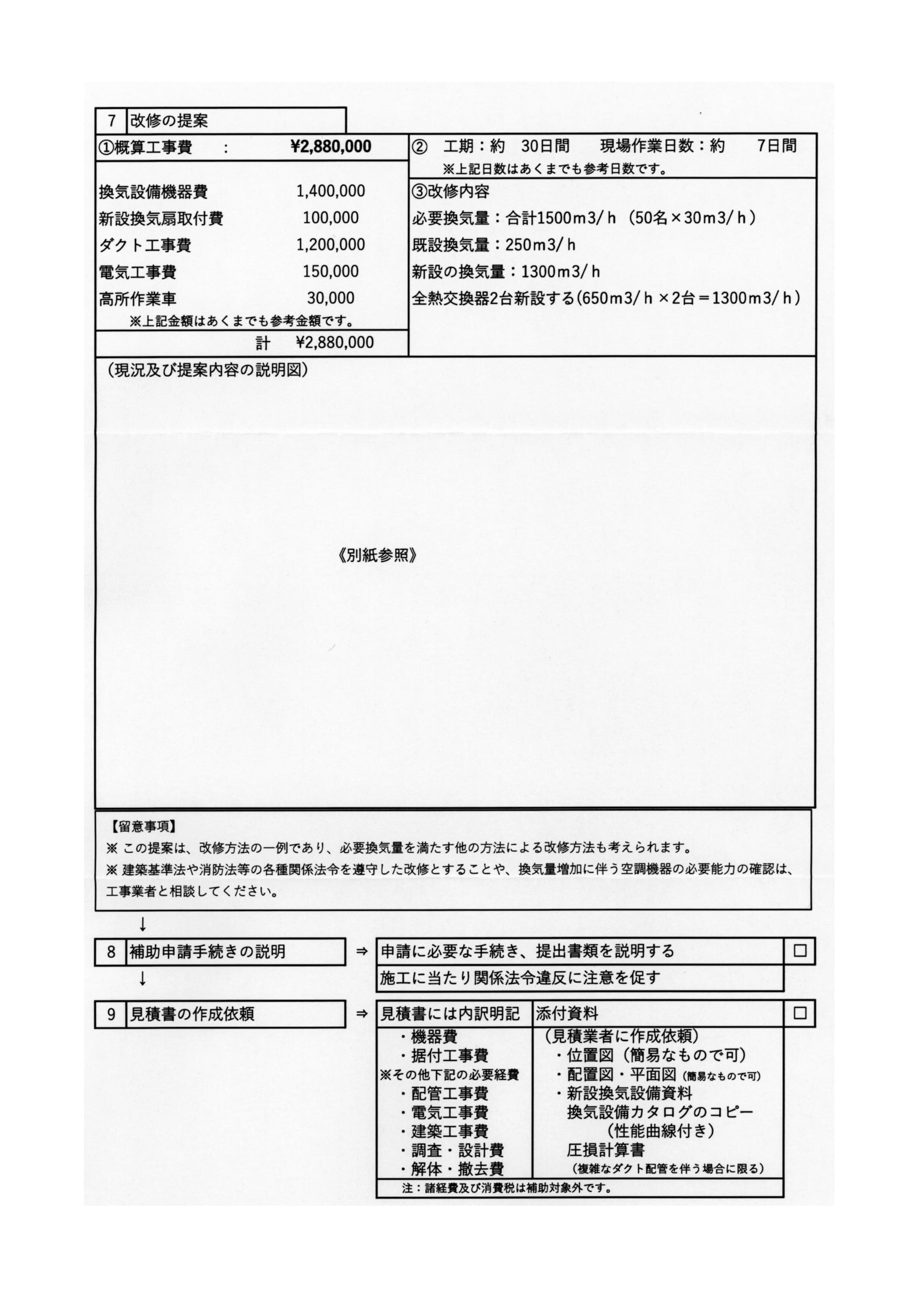 例:換気能力向上のための設備の新設・改修及びそれらに伴う関連工事費用