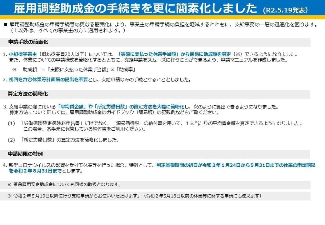 2020年5月19日より小規模事業主(従業員がおおむね20人以下の会社や個人事業主)については、支給申請が以前よりも簡単になりました。
