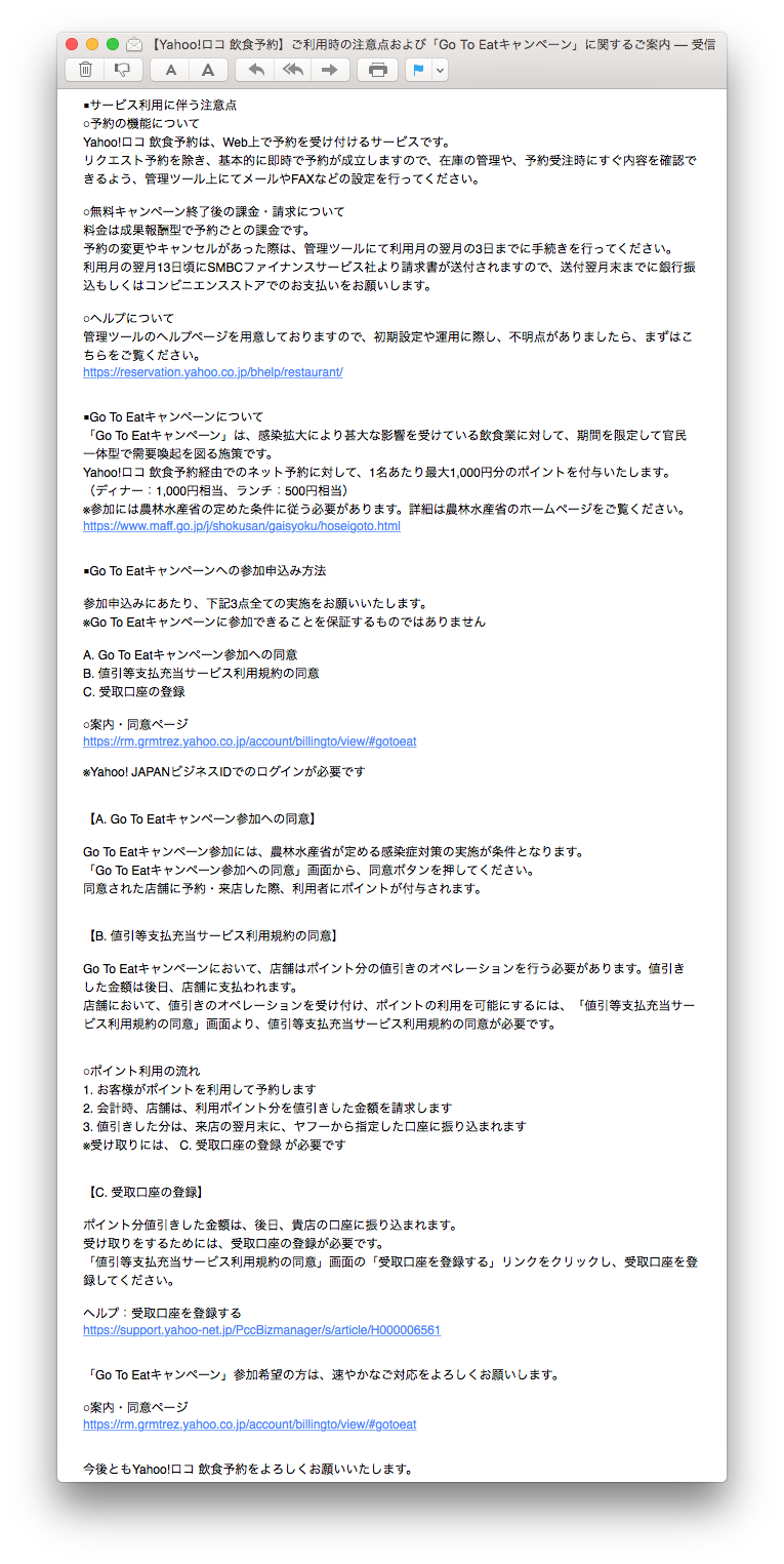 Go To Eatキャンペーン終了後もお申し出がない場合は契約継続となります。解約は申請月の翌月末解約となります。